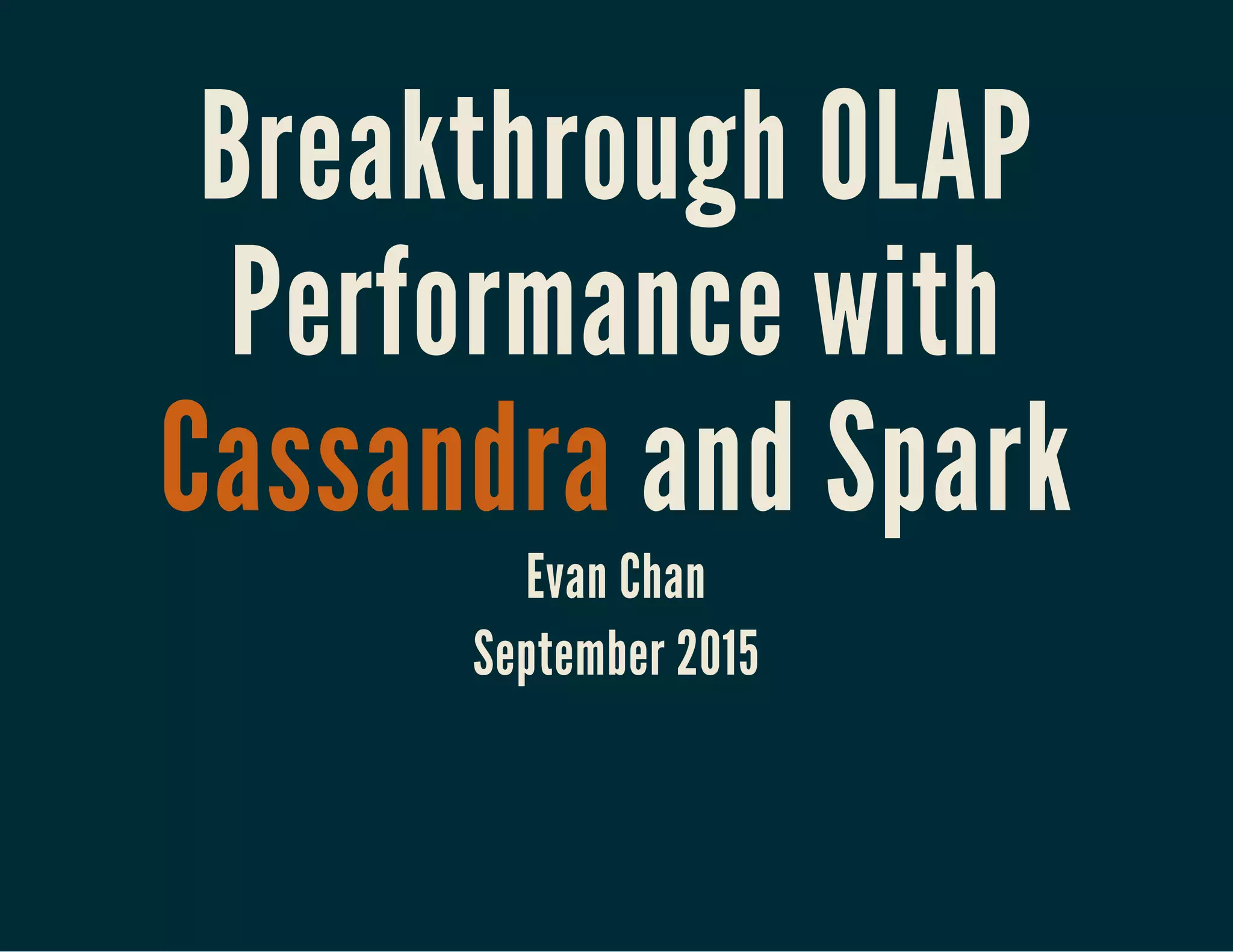 The document discusses the integration of Apache Cassandra and Apache Spark to enhance OLAP performance for real-time analytics on structured big data. It introduces Filodb, a columnar storage solution that provides efficient query performance and seamless ingestion for time-series and event data, emphasizing the advantages of columnar storage over traditional row-based storage. The presentation highlights various techniques for optimizing Spark queries on Cassandra, including caching and the use of columnar formats to improve speed and reduce I/O costs.