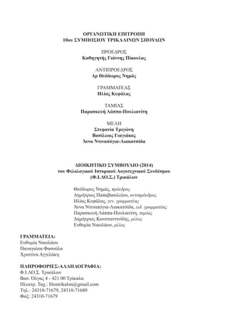 του 3ημέρου 10ου ΣΥΜΠΟΣΙΟΥ ΤΡΙΚΑΛΙΝΩΝ ΣΠΟΥΔΩΝ,