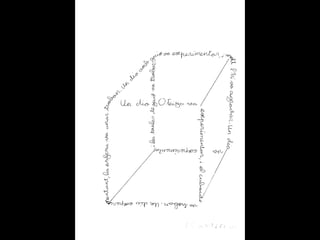 Allò essencial, paradoxes,enigmes, misteri, silenci, una idea de l’ originalitat. Aquest apartat recull les reflexions que hem fet motivats per la proposta que ens feia Jorge Oteiza. El treball escrit mostra grans idees que mitjançant el diàleg hem compartit els dies de treball amb l’escultor basc.