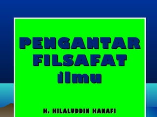 Dokumen ini merupakan pengantar filsafat ilmu yang menjelaskan pengertian dan tujuan filsafat, serta berbagai konsep dari para pemikir utama seperti Plato, Cicero, dan Descartes. Filsafat sebagai sebuah ilmu berupaya menjawab pertanyaan mendalam mengenai hakikat dan realitas, serta membagi diri ke dalam beberapa cabang seperti epistemologi dan etika. Selain itu, dikemukakan hubungan antara ilmu, filsafat, dan agama sebagai alat untuk mencapai kebahagiaan manusia.