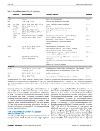 This document discusses the role of dendritic cells (DCs) in autoimmune diseases. It begins by introducing DCs as professional antigen presenting cells that are involved in both inducing immune responses and maintaining peripheral tolerance. The review then examines the different DC subsets and their potential roles in tolerance induction. It discusses factors that influence the generation of tolerogenic DCs, including their maturation status, intrinsic characteristics, interactions with other immune cells, and the tissue microenvironment. The review challenges the traditional view that immature DCs induce tolerance, presenting evidence that both immature and mature DCs can induce tolerance depending on other factors. It highlights the need to better define the features of DC subsets that induce tolerance.