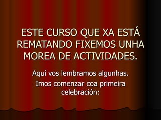 XA ESTÁ REMATANDO FIXEMOS UNHA MOREA DE ACTIVIDADES. Aquí vos lembramos algunhas. Imos comenzar coa primeira celebración: