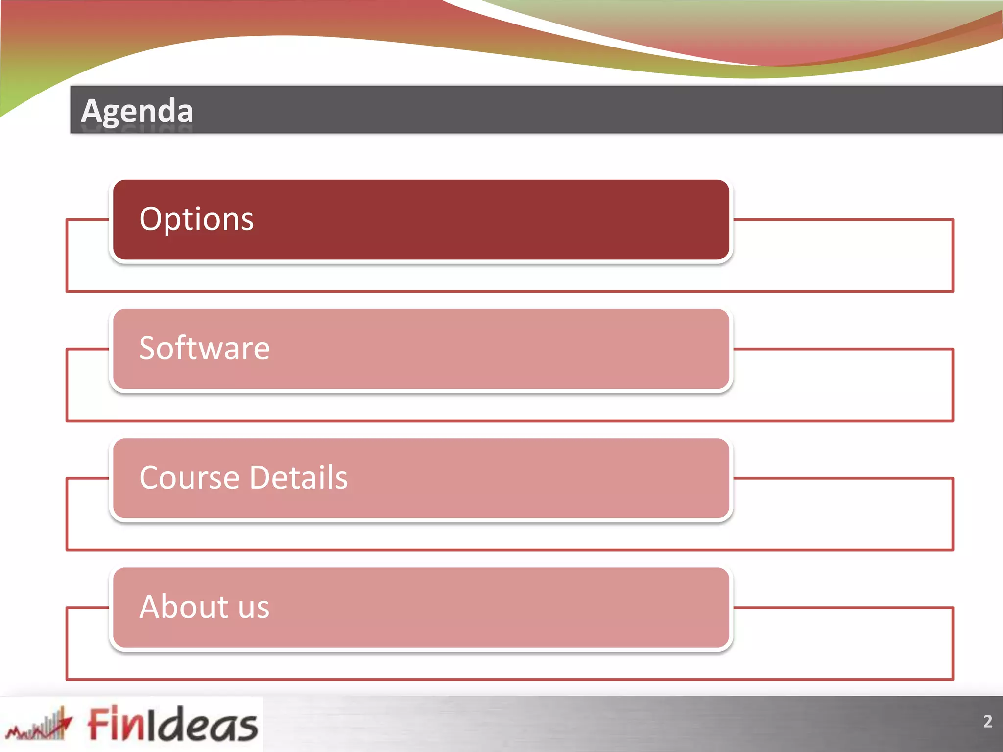 This document provides an overview of FinIdeas, an education company focused on options trading. It discusses the evolving Indian financial markets and opportunities in new products like options. FinIdeas offers options trading courses taught using in-house software to analyze strategies, volatility, and position Greeks. Upcoming topics include currency options launching in India and new exchange developments. The document outlines FinIdeas' team experience, focus on education and software, and goal of serving the stock market industry through various future services.