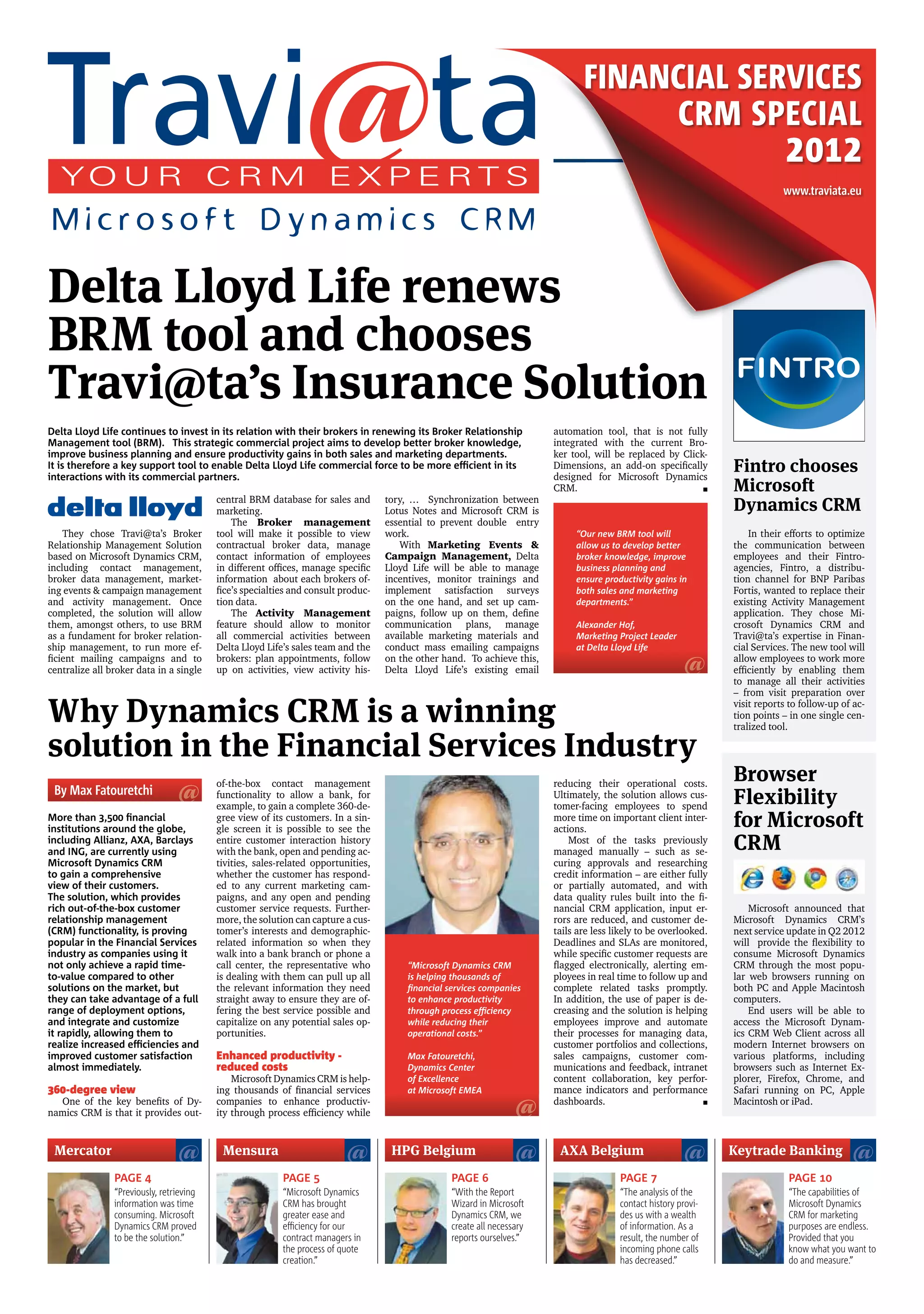 Delta Lloyd Life has renewed its broker relationship management tool, opting for Travi@ta’s Microsoft Dynamics CRM solution to enhance broker knowledge and productivity in sales and marketing. The upgrade aims to centralize broker data, improve campaign management, and streamline communications, ultimately leading to more efficient interactions with commercial partners. Additionally, Dynamics CRM is noted for its broad adoption in the financial sector due to its capability to improve customer insights and operational efficiencies.