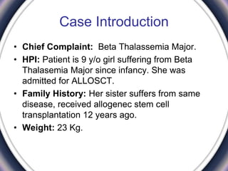 - A 9-year-old girl with beta thalassemia major was admitted to the PICU for respiratory distress following an allogenic stem cell transplant. She required intubation and mechanical ventilation support.