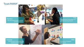 This document provides a final design case for Guidely, a portfolio platform to support project-based learning. It summarizes research conducted with educators on challenges of documenting student work and need for collaboration. An ideation process led to prototypes tested with teachers to gather feedback. Key values of the design include providing scaffolding for documentation, tracking student progress, and facilitating sharing between teachers, students, and schools. The platform aims to support an ecosystem of education focused on competencies over standards. Future directions may include integration with other platforms, improved tagging, reflection features, and group work capabilities.