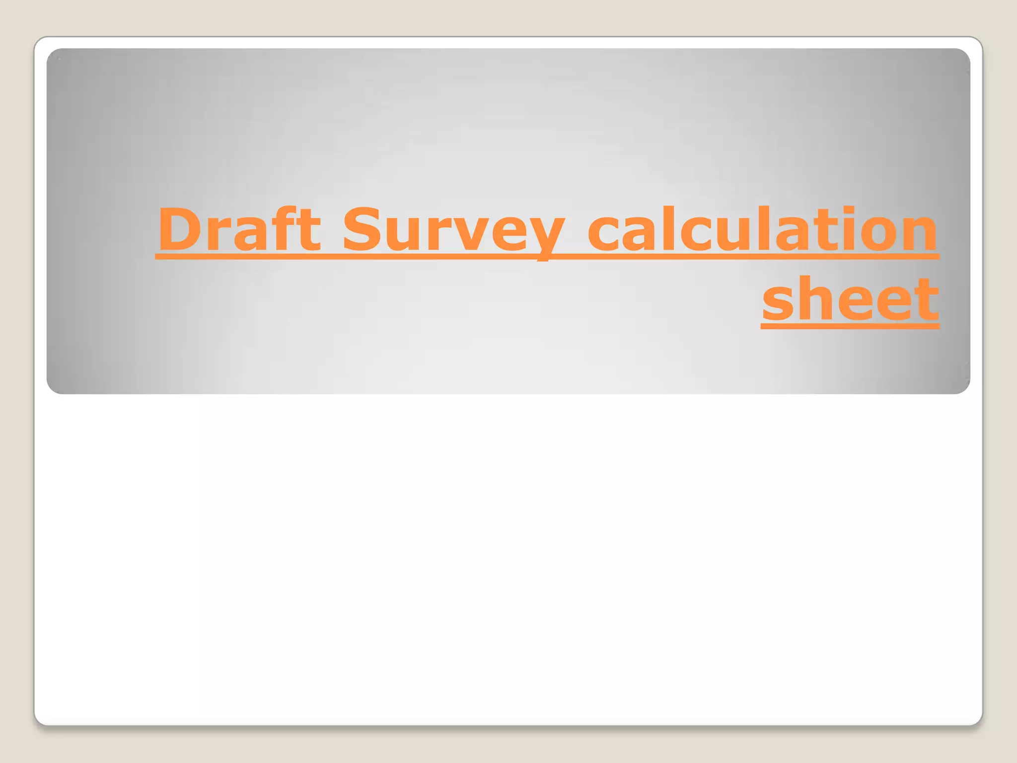 This document appears to be a draft survey calculation sheet containing definitions and formulas used to calculate a ship's displacement and cargo weight through draft surveys. It explains how draft readings are taken and corrected for trim and water density to determine the vessel's actual displacement. By subtracting the light displacement and amounts for fuel, ballast, and stores, the document aims to calculate a ship's cargo weight carried or discharged.