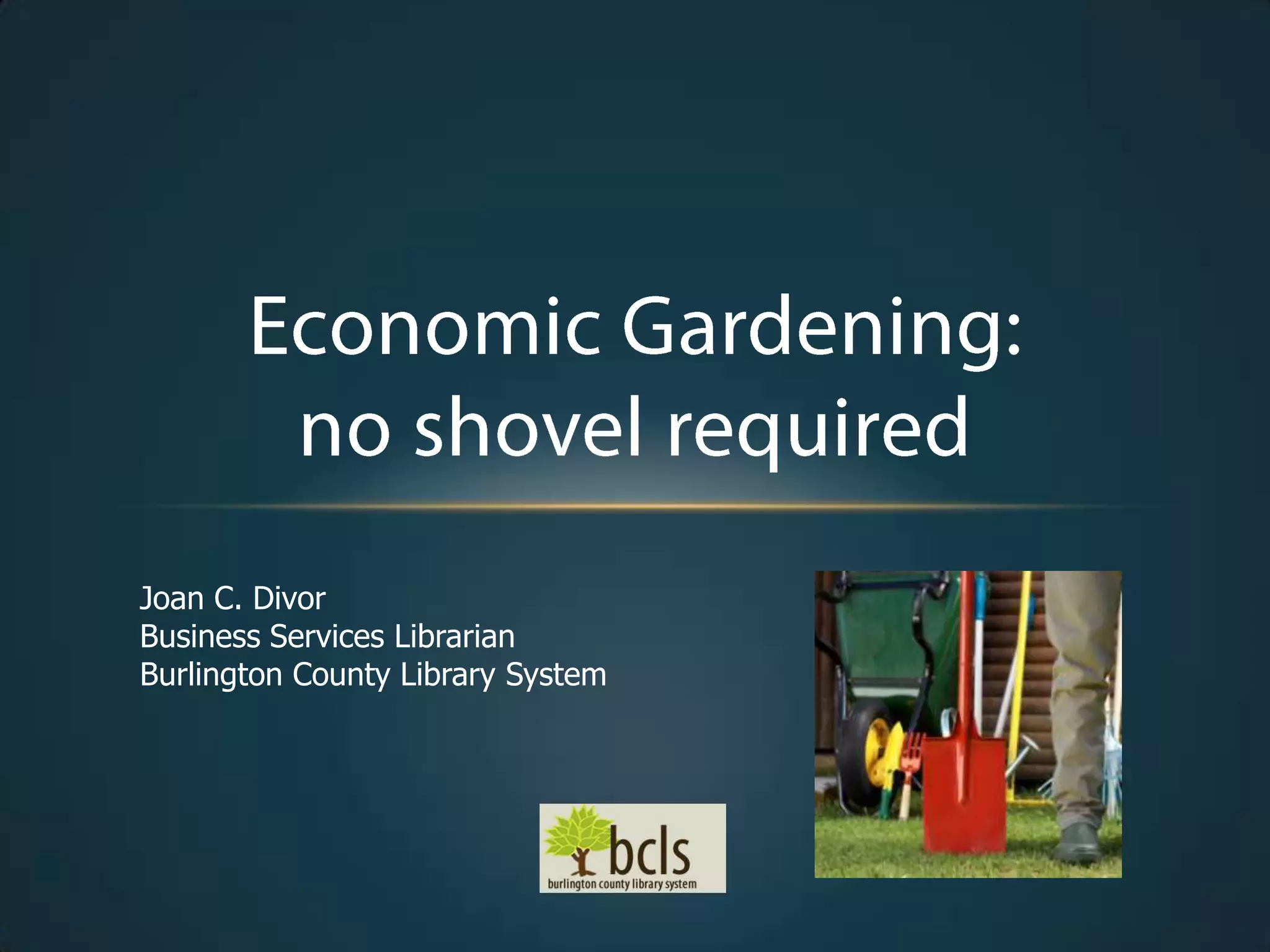 This document discusses economic gardening strategies to help established local businesses grow. It involves providing businesses with information/research, infrastructure support, and connections through collaboration between libraries, government agencies, and other organizations. When local businesses grow through increased sales and job creation, it benefits the whole community through economic growth and increased tax revenue. The library can play a natural partner by providing business research, databases, and connecting businesses to peers and industry experts. A proposed pilot program would start small by identifying local companies to participate and receive these supports.