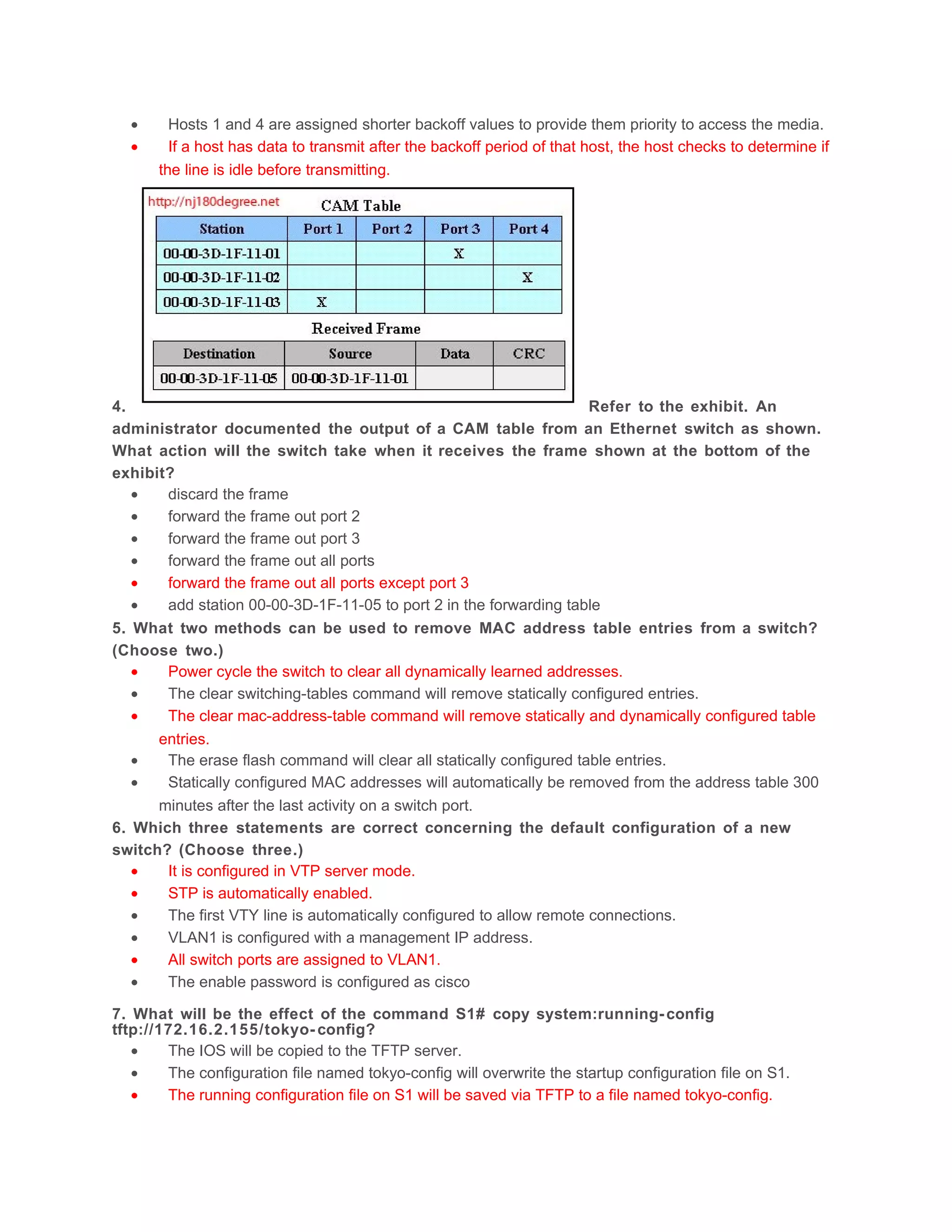 • Hosts 1 and 4 are assigned shorter backoff values to provide them priority to access the media.