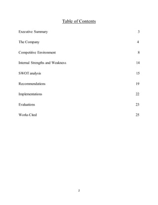 This report analyzes The Fresh Market grocery store in Sarasota, Florida, which has experienced high employee turnover. The summary examines the company's history, strategies, competitive environment, and recommendations. The Fresh Market was founded in 1982 and focuses on high-quality fresh products in a simple atmosphere. It aims to differentiate through local/organic options. High turnover is reducing morale and raising costs. The analysis recommends improving benefits and raising wages to boost retention.