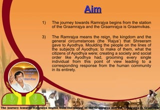 1) The document outlines the principles and components of Gram Vikas (village development) as envisioned by the Shree Aniruddha Upasana Foundation.