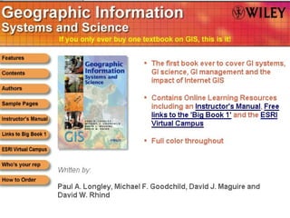 This document discusses geographic information systems (GIS) including: