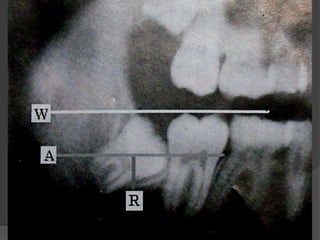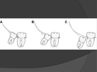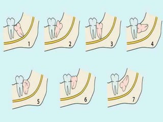 This document provides information on impacted third molars and their surgical removal. It begins with definitions of impacted and unerupted teeth. It then discusses the various classifications of impacted third molars based on their position, such as Winter's classification. The document outlines the surgical procedure for removal, including flap design, bone removal, tooth sectioning if needed, and delivery of the impacted tooth. It emphasizes performing the surgery in an aseptic manner to minimize complications.