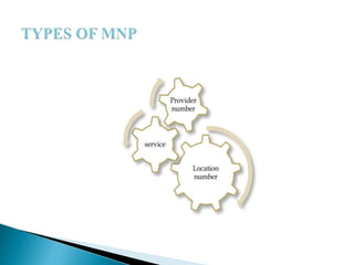 Mobile number portability allows mobile users to retain their original phone number when switching network providers. There are three types of number portability: operator portability, location portability, and service portability. The mobile number portability process involves a port in and port out process to activate a subscriber on the new network and deactivate them from the old network. Subscribers can port their number by sending a SMS message with their number to 1900 and receiving a porting code, then providing identification to a mobile retailer who handles the documentation process. Mobile number portability benefits subscribers through increased choice of providers and plans while simplifying the switching process.