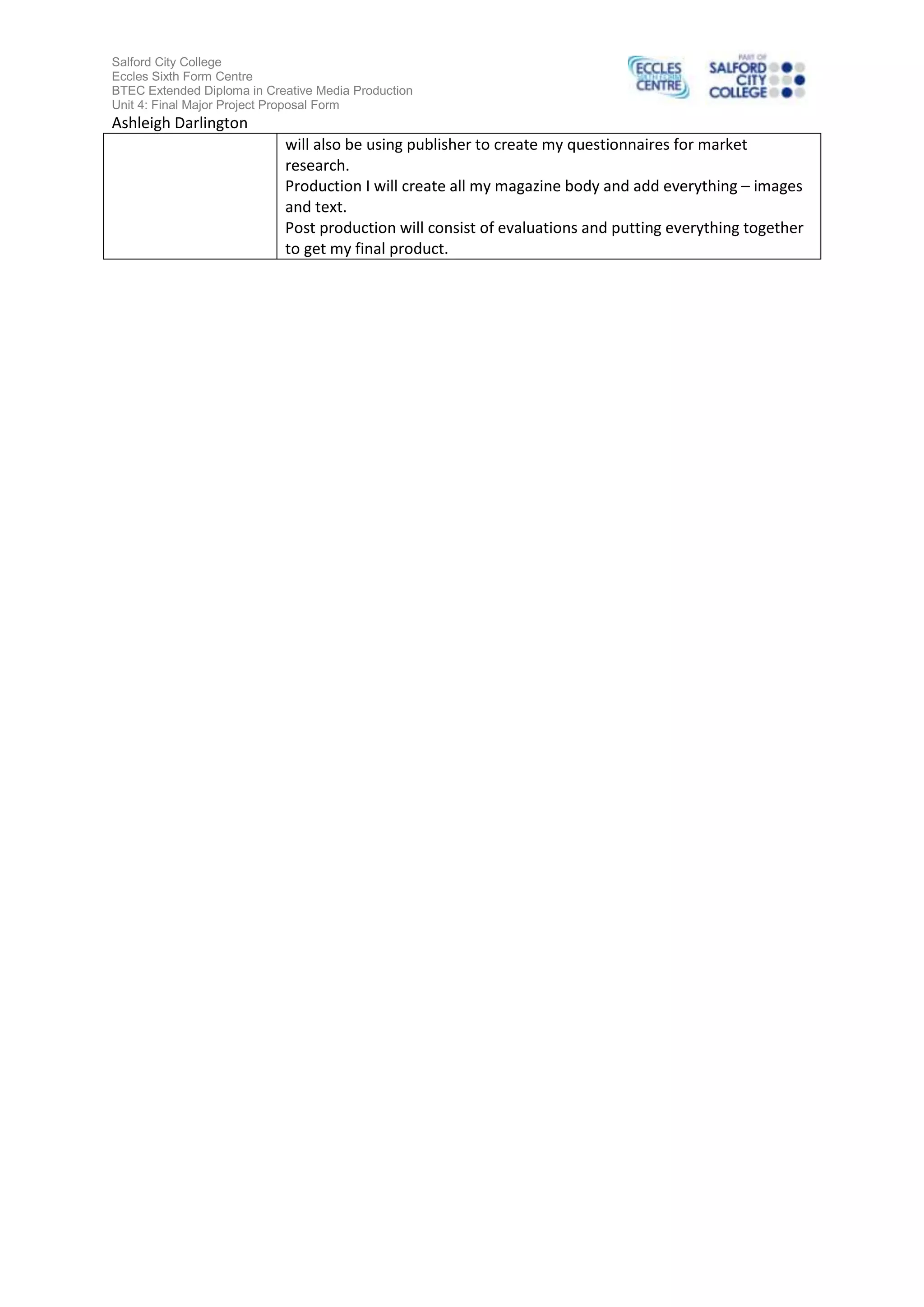 1) Ashleigh Darlington proposes creating a fashion and celebrity gossip magazine as her final major project.