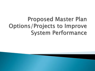 This document summarizes water supply and demand projections for a water agency through 2035. It analyzes the agency's baseline supply and demand under normal weather conditions, and identifies potential supply shortages during dry years. The document evaluates the agency's existing water storage and conveyance infrastructure and identifies needs to improve system performance and reliability. Metrics and thresholds are established to determine when new infrastructure or supplies may be needed to address risks to the system from high conveyance utilization or low delivery reliability. Near-term and long-term options are considered to address identified needs and ensure a reliable water supply for the region.