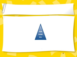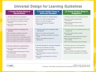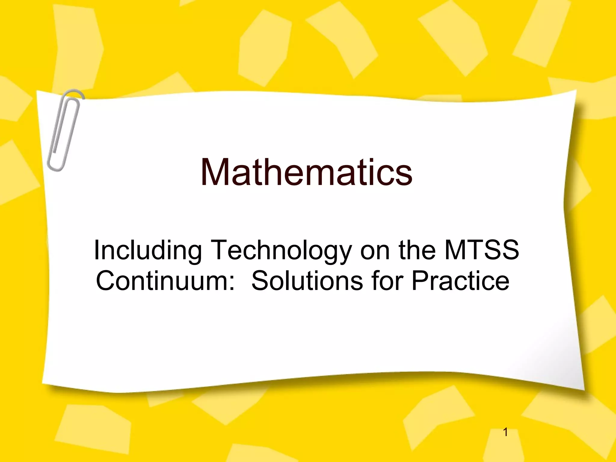The document summarizes strategies and technologies that can be used to support students within a multi-tiered system of support (MTSS) framework, particularly for mathematics instruction. It discusses recommendations from research including explicit instruction, visual representations, formative assessment, and peer-assisted learning. It also provides examples of graphic organizers, visual learning tools, math games, and text-to-speech technologies that can help meet varied student needs when incorporated into a differentiated MTSS approach.