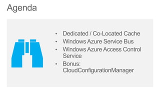 The document provides technical details on implementing caching and messaging using Microsoft Azure technologies, including memcached, Windows Azure queues, and service bus queues. It outlines caching strategies, message sending and receiving processes, and error handling for message processing. Additionally, it discusses user authentication and role management through claims in an Azure context.