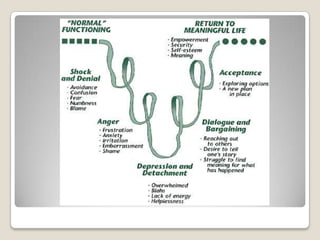 1. It describes the stages of grief according to the Kübler-Ross model: denial, anger, bargaining, depression, and acceptance.