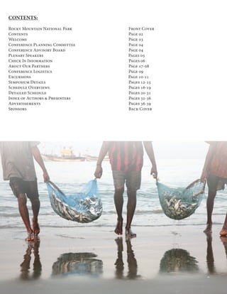 This document provides information for attendees of the Pathways 2014 conference being held from October 5-9, 2014 at the YMCA of the Rockies in Estes Park, Colorado. The conference theme is "Integrating Human Dimensions into Fisheries and Wildlife Management: Common Futures". The document includes details on registration check-in, uploading presentations, amenities at the venue, partner organizations, social events, transportation, advice for adapting to the high altitude, and medical care information. It also provides biographies of the two plenary speakers who will discuss coupled human-natural systems and collaborative approaches to management.