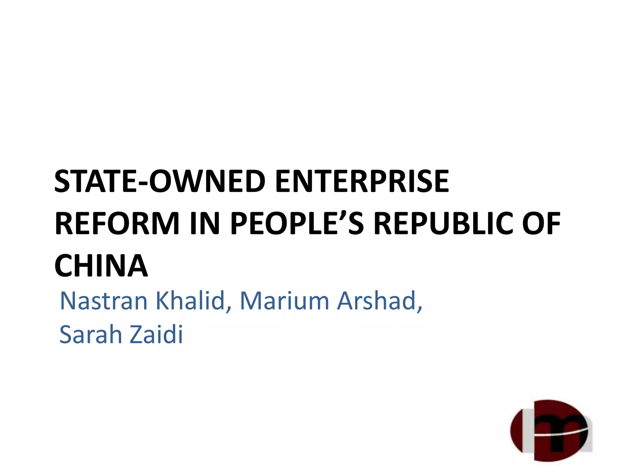 The document summarizes the reform phases of state-owned enterprises (SOEs) in China from 1978 to the present. It discusses 4 phases of reform: 1) 1978-1983 which expanded enterprise autonomy; 2) 1983-1987 which introduced profit retention; 3) 1987-1992 which introduced contract responsibility systems; 4) 1992-1997 which established a social market economy and shareholding system. Current reforms aim to restructure large SOEs while privatizing small ones to increase efficiency while maintaining social stability.