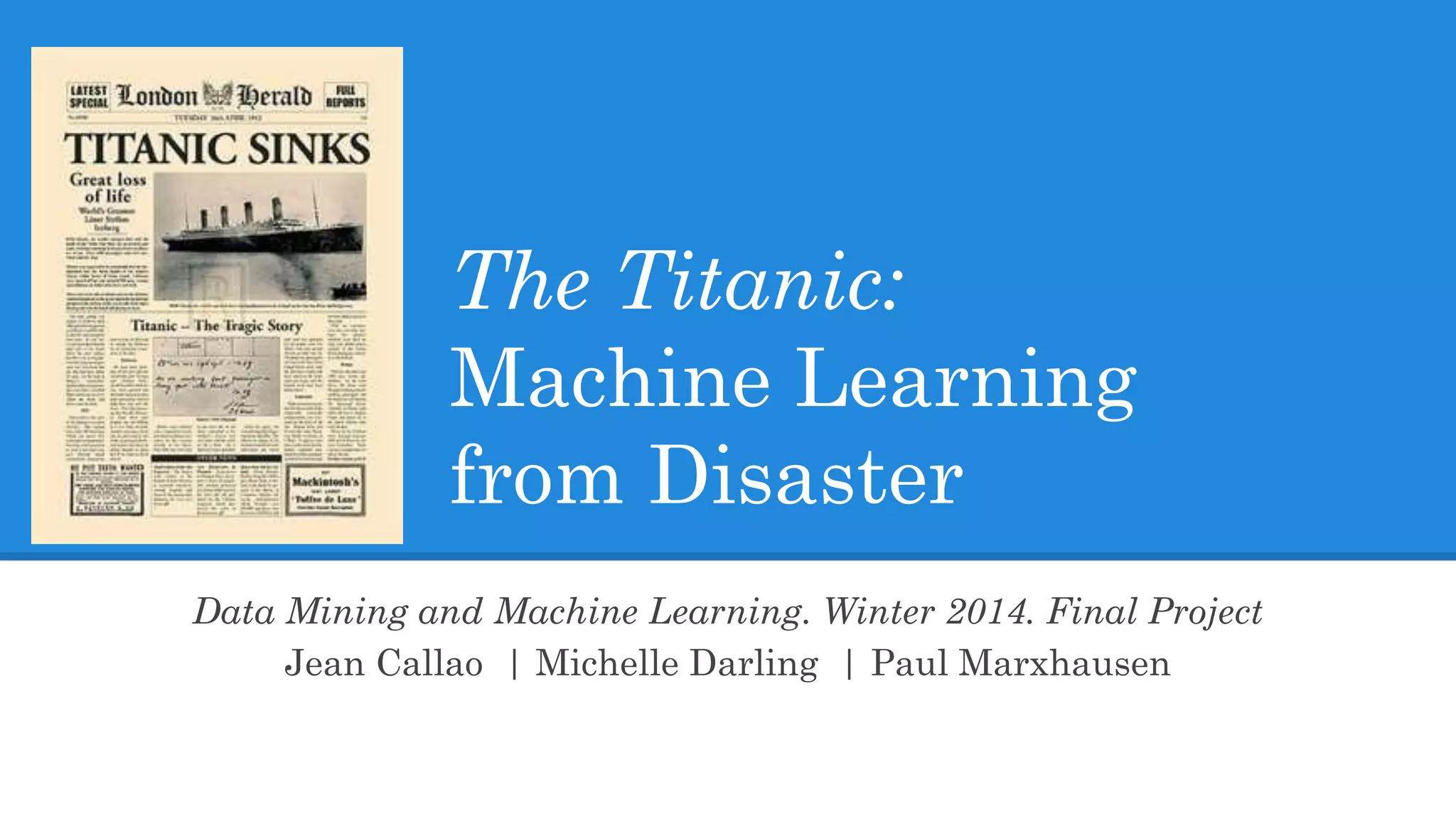 The document summarizes machine learning models developed to predict Titanic passenger survival from training data provided by Kaggle. Logistic regression and decision tree models were able to predict survival with over 75% accuracy. Random forest and conditional inference tree ensemble methods in the randomForest and party packages achieved the highest accuracy of over 81% on the competition test data. Feature engineering improved predictions by accounting for variables like passenger class, gender, age, fare paid, and whether traveling with family.
