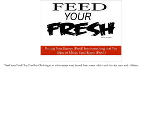 PoorBoy Clothing is an urban streetwear brand that creates t-shirts, hats, and clothing for men and children. The brand represents urban culture and aims to spread positive messages and experiences. It was started in 2011 by a couple in their home as a hobby and has since grown, with their designs seeking to inspire people to "feed their fresh" or positive energies and influence others to do the same. Their clothing exemplifies turning negative experiences into something positive.