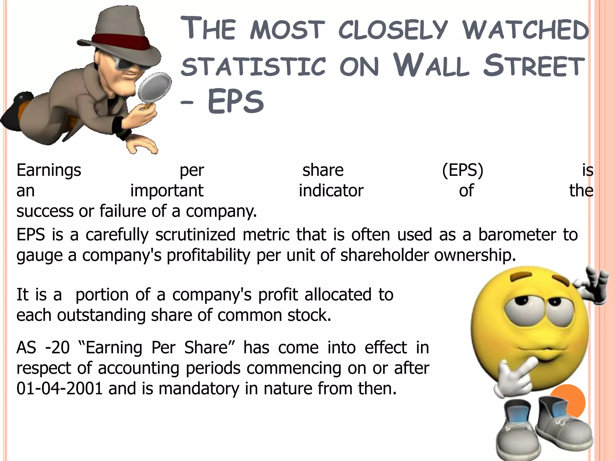 - While EPS indicates a company's profit per share, it does not provide information about debt levels or cash flow and can be manipulated.