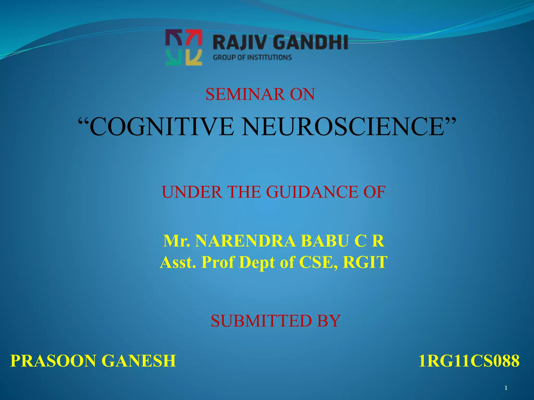 This document outlines the agenda and content for a seminar on cognitive neuroscience. It introduces cognitive neuroscience as the study of biological substrates underlying cognition, focusing on the neural substrate of mental processes. It discusses the basic unit of the brain (the neuron), cognition, neurocognition, areas of the brain like the hippocampus and prefrontal cortex. It also outlines methods used to study cognition like psychophysics, EEG, fMRI, and transcranial magnetic stimulation. The seminar aims to provide an understanding of how psychological/cognitive functions are produced by neural circuits in the brain.
