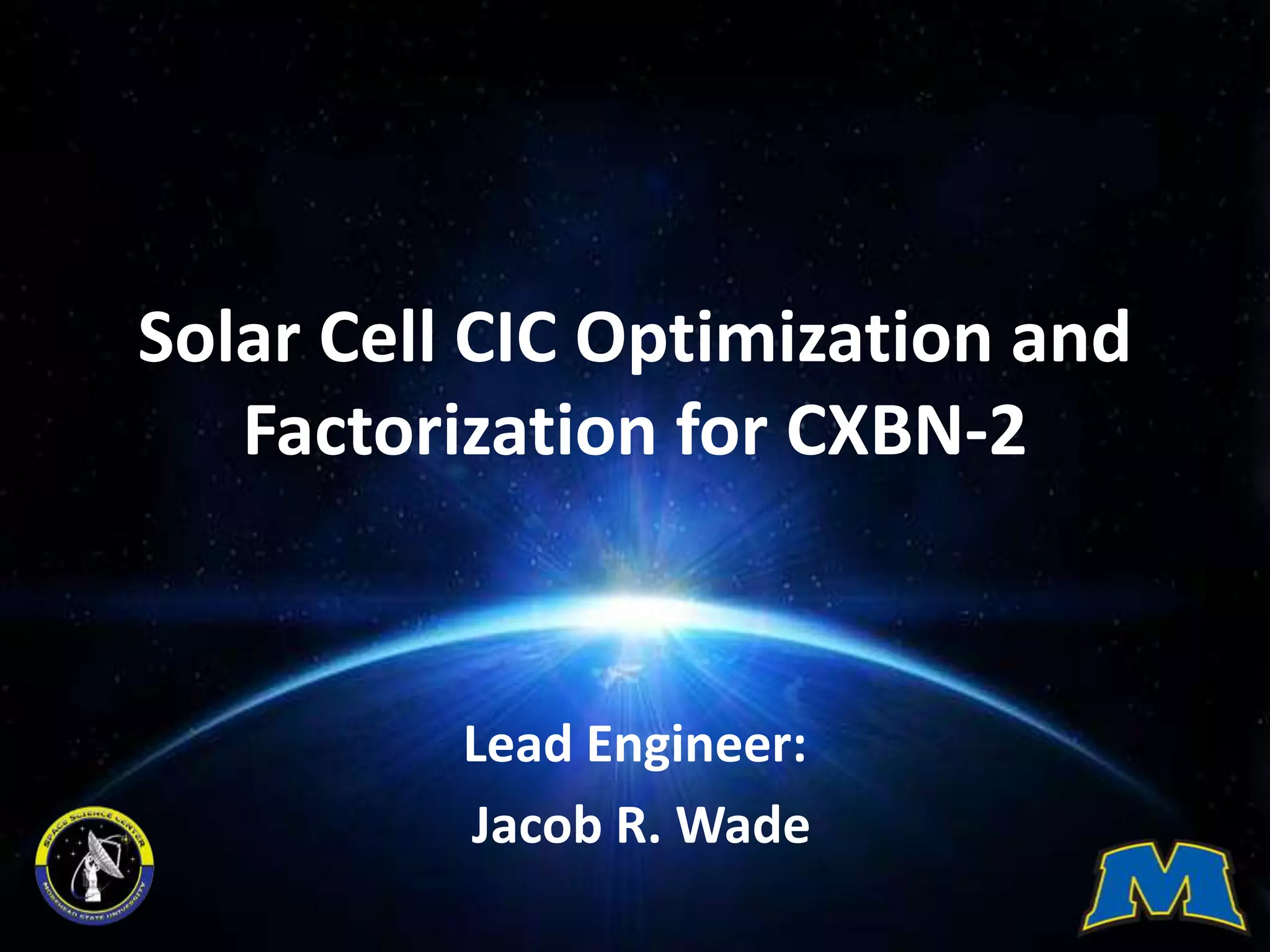 Dicing solar cells can optimize surface area for CubeSats while providing necessary power. CXBN-2 will test dicing and electrically connecting diced solar cell strings to maintain positive power output. Solar cells need dicing to achieve voltage matching for each string. This project will dice solar cell interconnects to satisfy small satellite requirements with optimal area and power. CXBN-2's original design had double fold-out solar panels but a single fold-out reduces risk and cost for the reduced payload power needs. Testing showed diced cells can achieve mission requirements if undamaged, but fogging from dicing causes permanent efficiency losses.