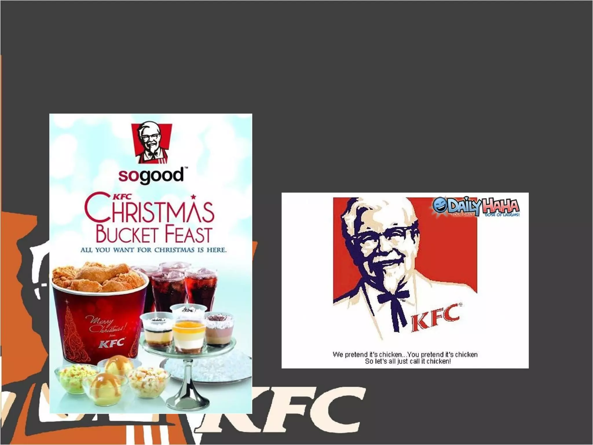 Harland Sanders opened his first restaurant in 1930 in Kentucky serving chicken dishes. In the 1950s, he began franchising his secret chicken recipe. By the 1960s, KFC had over 600 locations globally. Sanders sold the company in 1964 but remained a spokesman until his death in 1980. KFC has since changed ownership multiple times but remains one of the largest fast food chains in the world focused on fried chicken. It faces competition from other fast food giants like McDonald's but maintains strength through its iconic chicken recipe and global brand recognition.