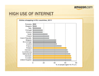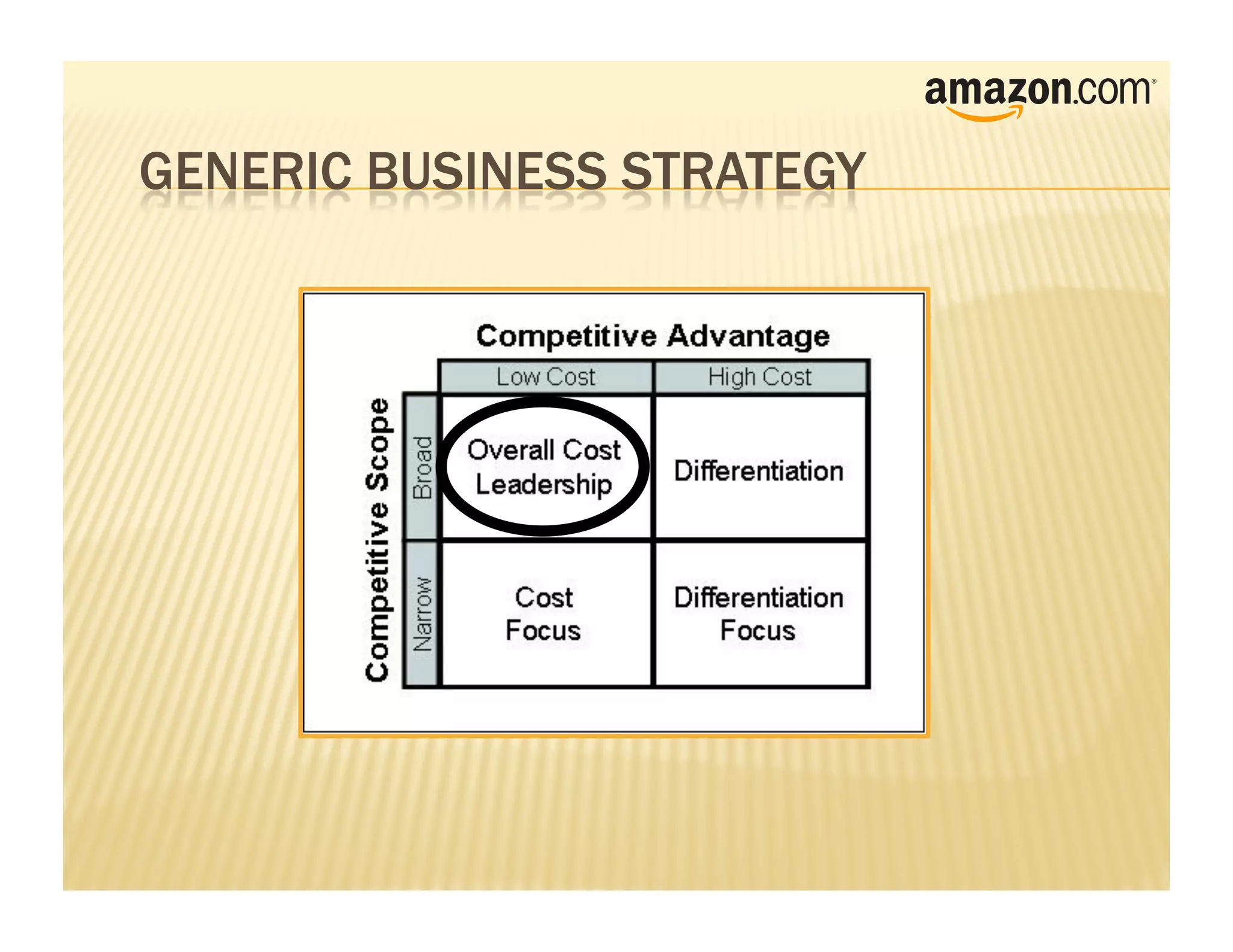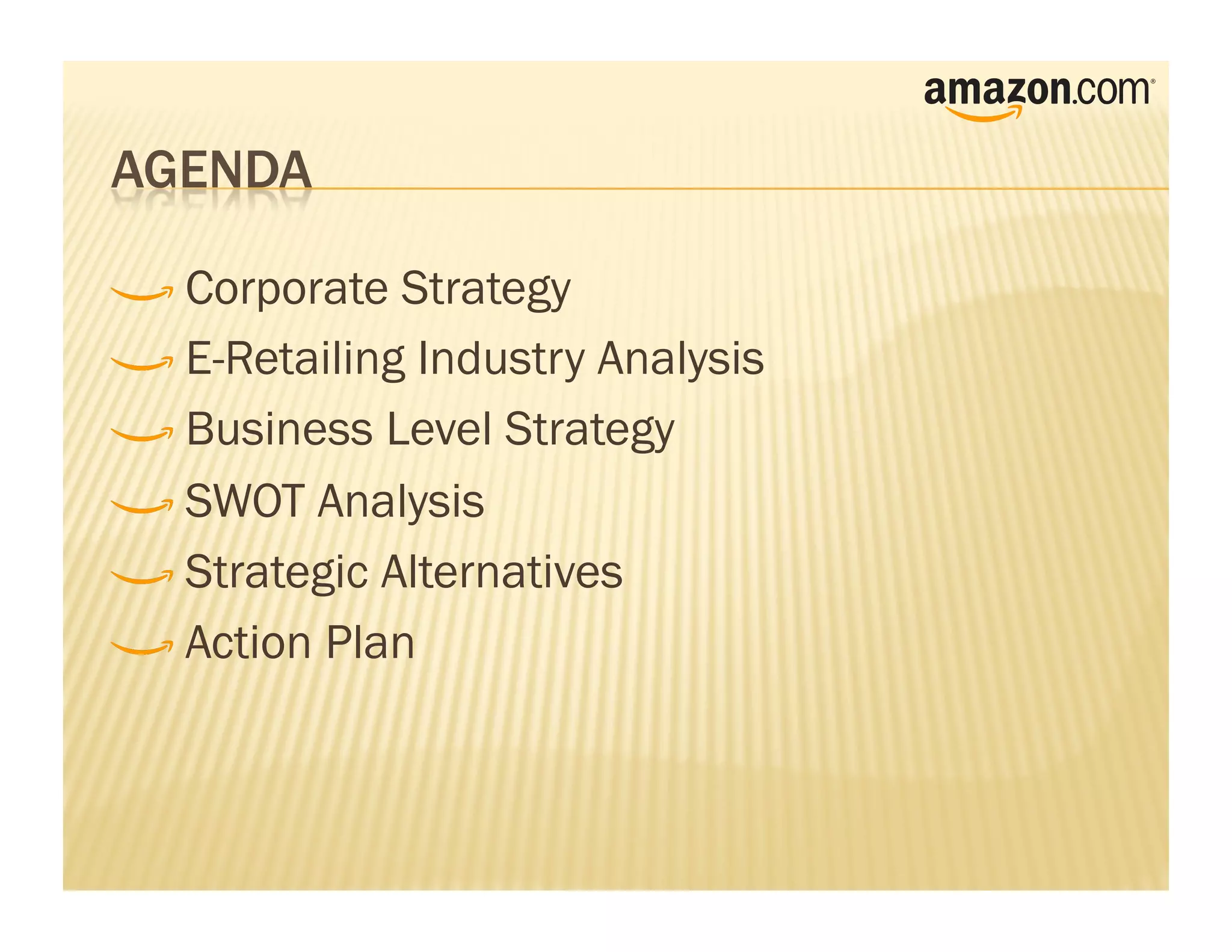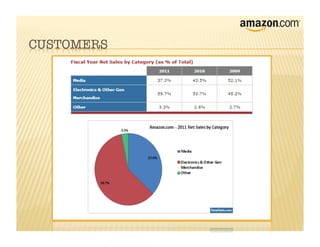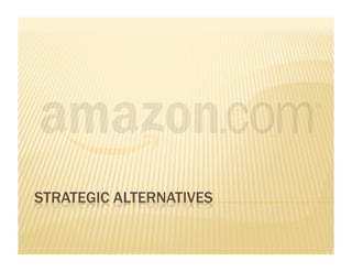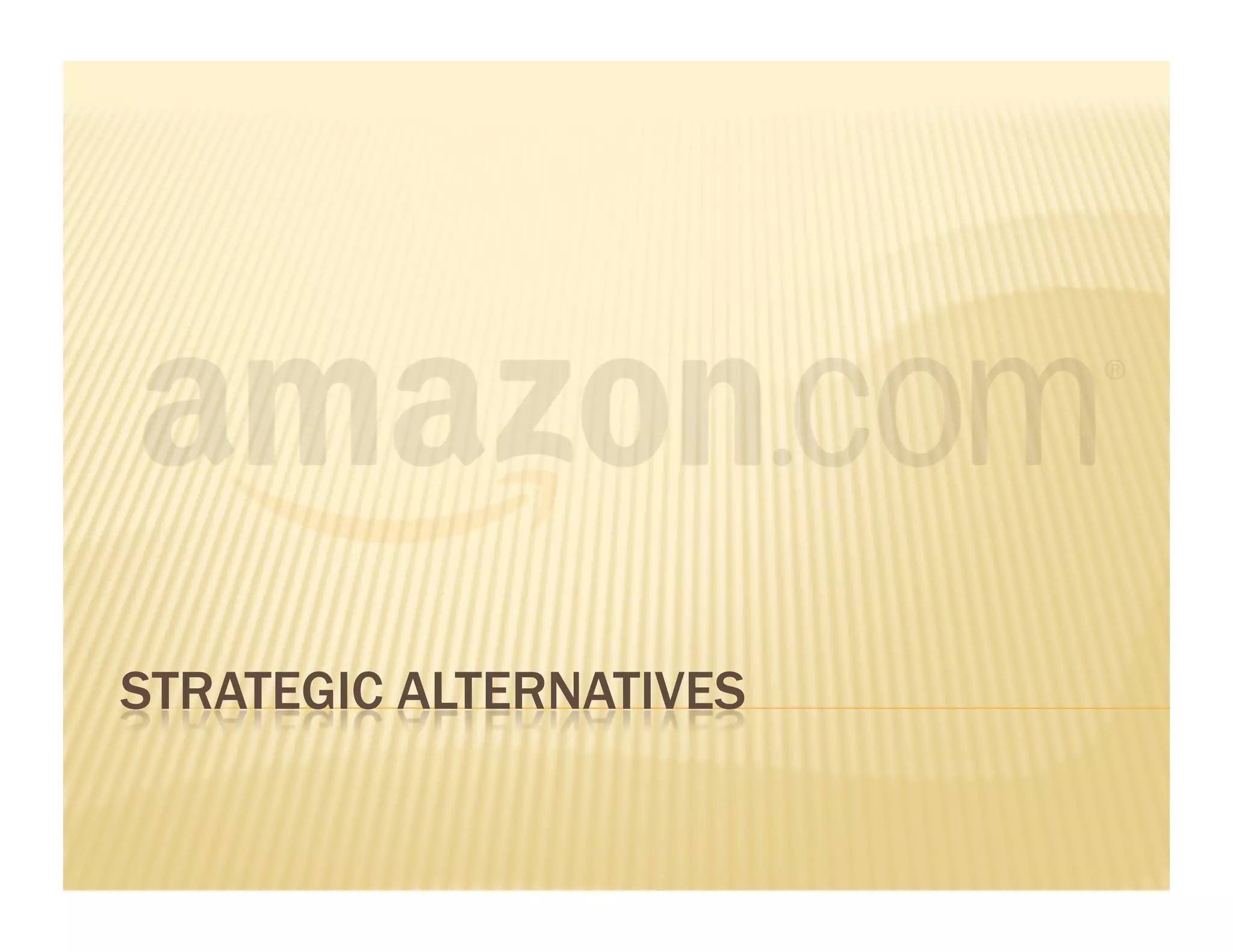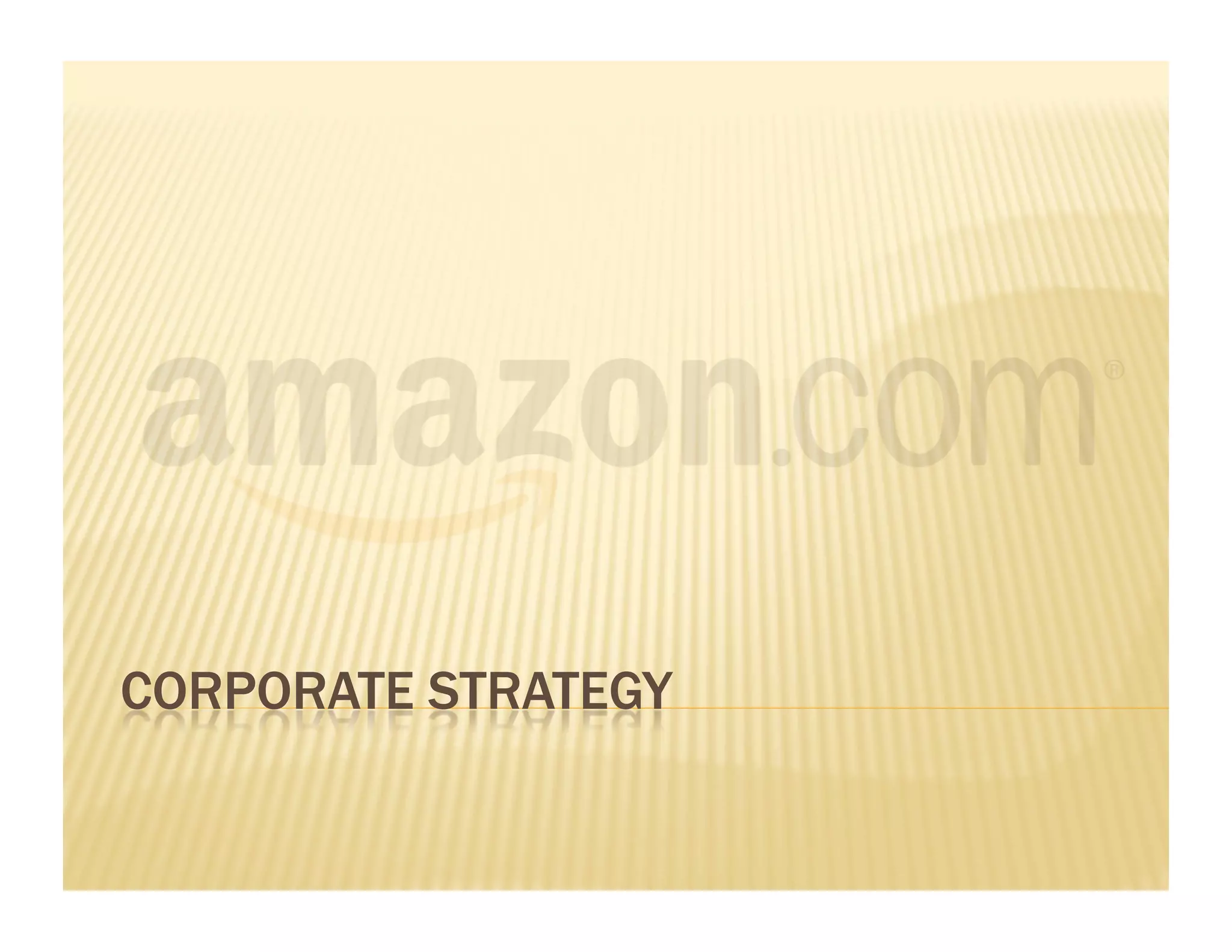 The document outlines Amazon's corporate strategy, including its evolution from an online bookstore to the world's largest e-retailer, leveraging technology and customer-centric methods to achieve low-cost solutions. It details various business strategies, SWOT analysis, and competitive advantages, emphasizing the importance of economies of scale, innovation, and diversification. Additionally, it discusses the potential for long-term success and expansion, particularly in the context of Amazon Web Services (AWS) and international markets.