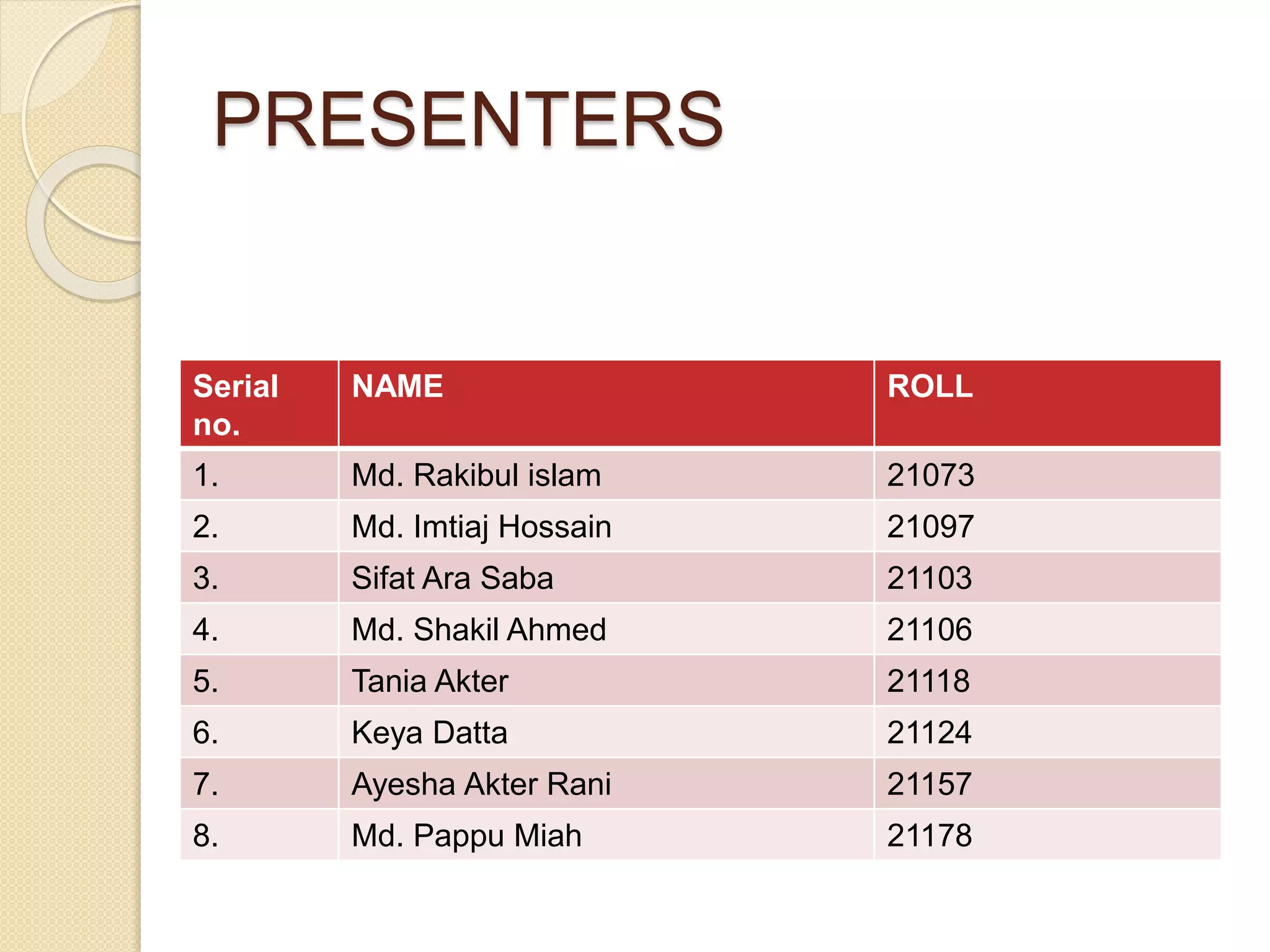 This presentation introduces 8 presenters and discusses computer hardware. It defines hardware as the physical components of a computer system and outlines the basic hardware devices: input devices like keyboards and mice, processing devices like the CPU and motherboard, output devices like monitors and printers, storage devices like hard drives and RAM, and communication devices like network cards and Bluetooth. It provides details on these device types and describes common problems that can damage computer hardware like overheating, power failures, and viruses. It recommends measures to protect hardware like grounding yourself and using updated antivirus software.