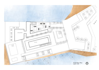 The document summarizes a site visit and design for a community swimming center in Port Dickson, Malaysia. The site currently serves as an overnight camping area for families. It has three distinct areas - mangroves providing privacy and shade, an open beach with views of the sea, and a man-made beach for children. The proposed community center design embraces the natural landscape and uses spatial hierarchy and climatic responses to organize functions and encourage social interaction while maintaining a sense of privacy and visual permeability.