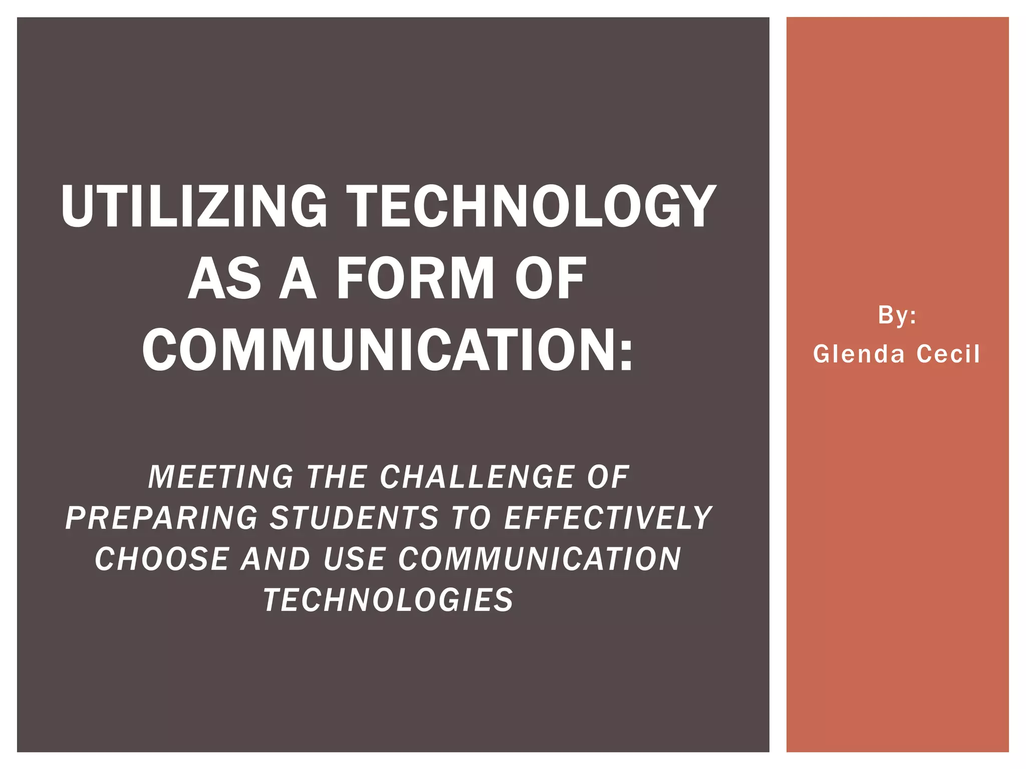 The article discusses the need for communication instructors to prepare students to effectively use communication technologies. It proposes teaching students about new technologies, how to use them, and when each is appropriate. The approach involves exposing students to technologies through in-class exercises and assignments requiring technology use. Students are also encouraged to use campus resources to learn technologies. Evaluating this approach found it effective for preparing students for a workplace increasingly reliant on communication technologies.