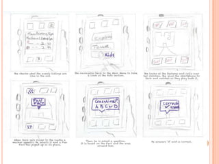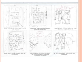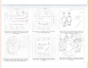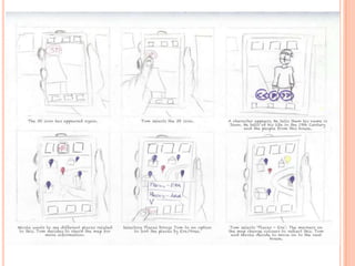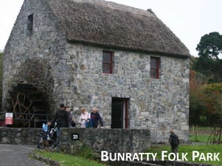 The document discusses the development of a mobile augmented reality navigational aid for Bunratty Folk Park, designed to enhance visitor experience by overlaying digital information onto physical exhibits. It emphasizes human-centered design, identifying visitor goals, and iterating through prototyping to ensure usability. The final design aims to provide easy navigation and interactive features while encouraging visitor engagement through technology.