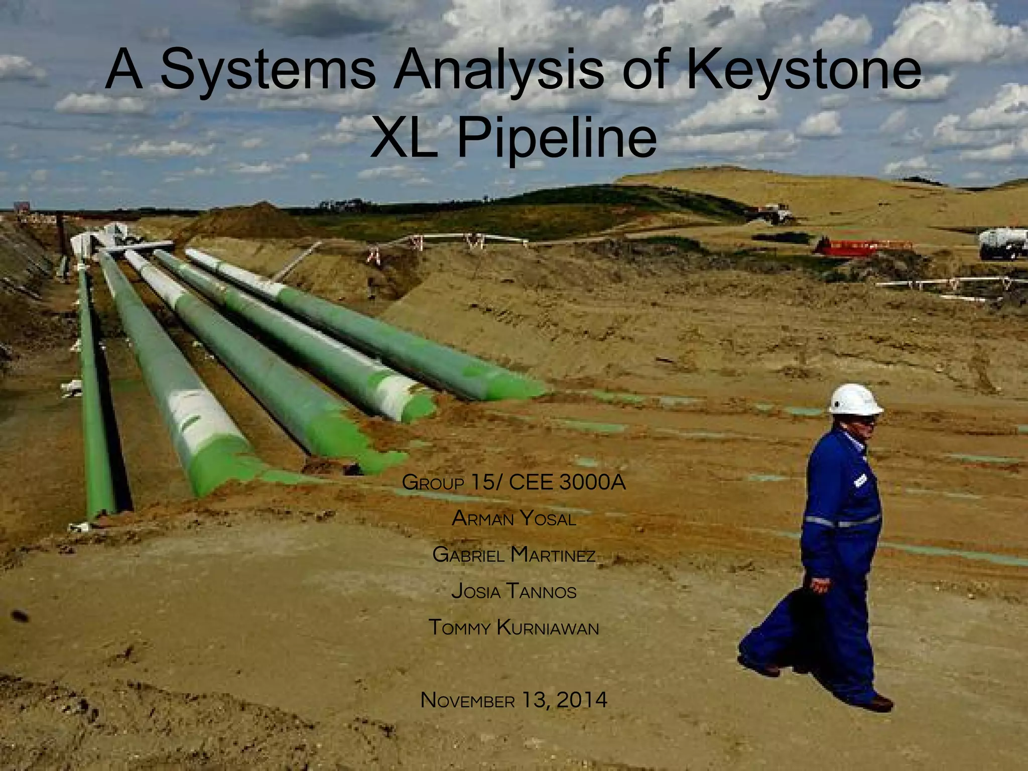 The document analyzes the proposed Keystone XL oil pipeline from Alberta, Canada to Nebraska. It would transport 830,000 barrels per day of crude oil. The pipeline is proposed to address oil demand and make the US less dependent on foreign oil imports. However, its environmental impacts were questioned as it would produce 1.44 million tons of carbon emissions annually and could potentially pollute water sources like the Ogallala Aquifer if leaks occurred. While creating short-term jobs and economic growth, it may disrupt other industries like farming and tourism and face opposition from landowners and indigenous groups along its path. The analysis finds the project is not environmentally sustainable long-term.