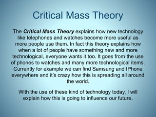 The document discusses predictions for communication technology in 2026, emphasizing the evolution of phones and watches, which will feature advanced functionalities like 3D projections and phone screen displays. It also highlights the transformation in education with virtual classrooms and the innovative design of vehicles, including self-driving capabilities and voice recognition. Furthermore, it underscores the significant improvements in medical care through enhanced access to data and advanced surgical techniques using electronic devices.