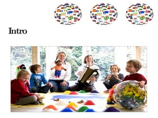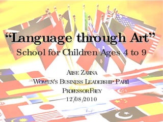 The document proposes a business idea to teach languages like English, Russian, German and Spanish to children ages 4 to 9 through singing, drawing and dancing classes. The target customers would be parents with children ages 3 to 9 and kindergartens and baby schools. The business aims to educate and prepare children to be more successful and competitive in the future, as supported by research on respondents acknowledging this need. Classes would cost between $5 and $12.