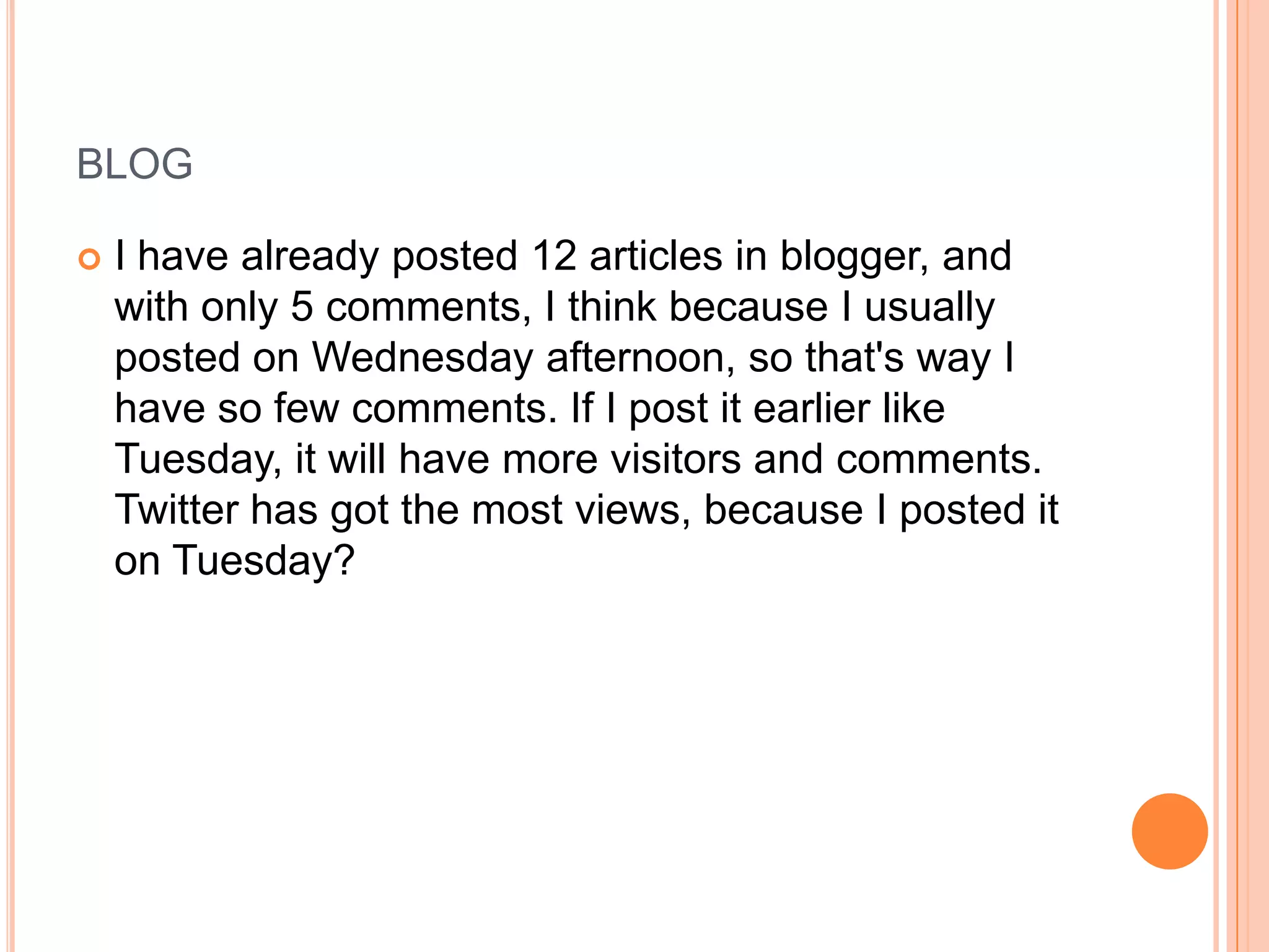 The document discusses the author's experiences using different social media platforms for their final project. For their blog, posting earlier in the week led to more comments. Their vlog took two hours to create but only received a few views. Facebook allows connecting with a wide range of friends and groups but may be blocked in China. Twitter enables following topics and sharing short updates. LinkedIn can help connect to groups and find jobs but the author does not feel professional enough to use it fully. Overall, the author found various social media platforms useful to build their personal brand.