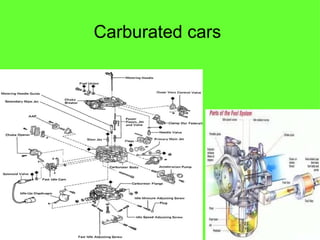 Technology has significantly changed automobiles over the years. Early cars used carbureted fuel systems and drum brakes, while modern vehicles now typically have fuel injection, disc brakes, ABS, GPS, and safety features like airbags and seatbelts. New technologies also allow for remote tracking and shut-off of vehicles, as well as electric cars becoming more popular due to environmental and economic benefits.