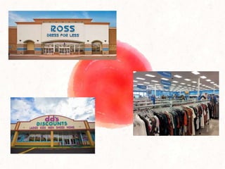 This document provides an overview of Ross Stores, including its history, financial information, strengths, weaknesses, opportunities, threats, competitors, and plans for the future. Some key points: