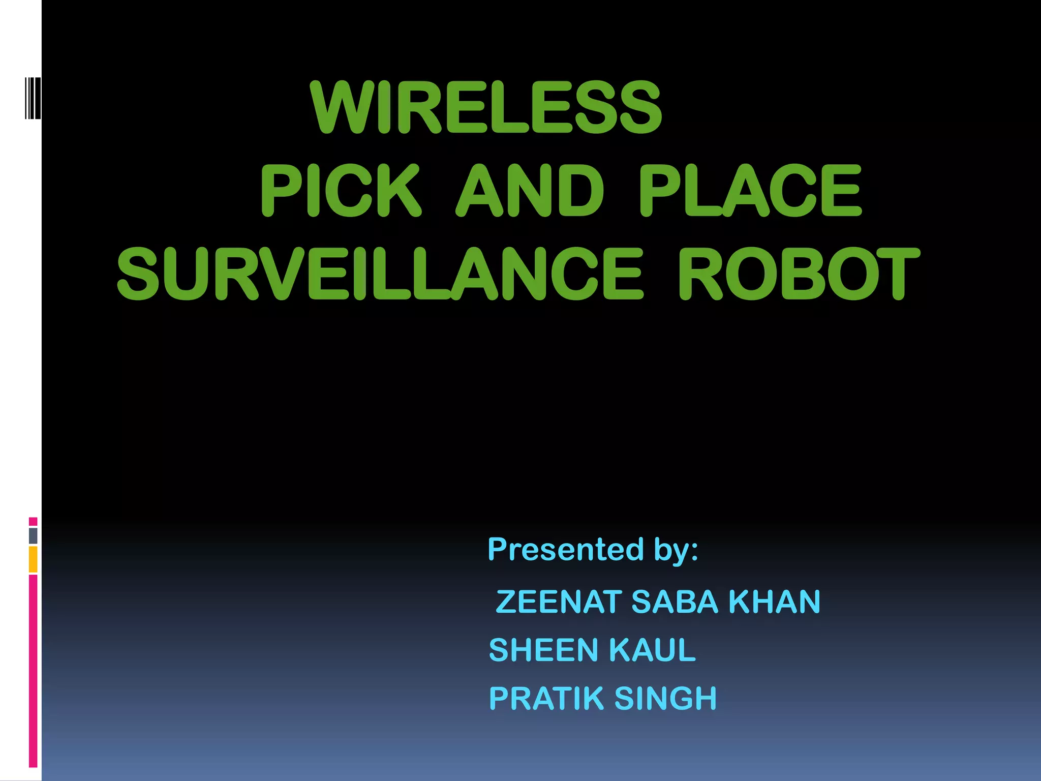 The document outlines the design and functionalities of a wireless pick and place surveillance robot, which is intended for use in hazardous environments across various applications, including military and medical fields. It details the mechanical, electronic, and software aspects of the system, highlighting components like a microcontroller and motors that enable its movement and operations. The robot is designed to be compact, reliable, and capable of operating remotely, aiming to assist in tasks such as transporting objects and aiding in surveillance.