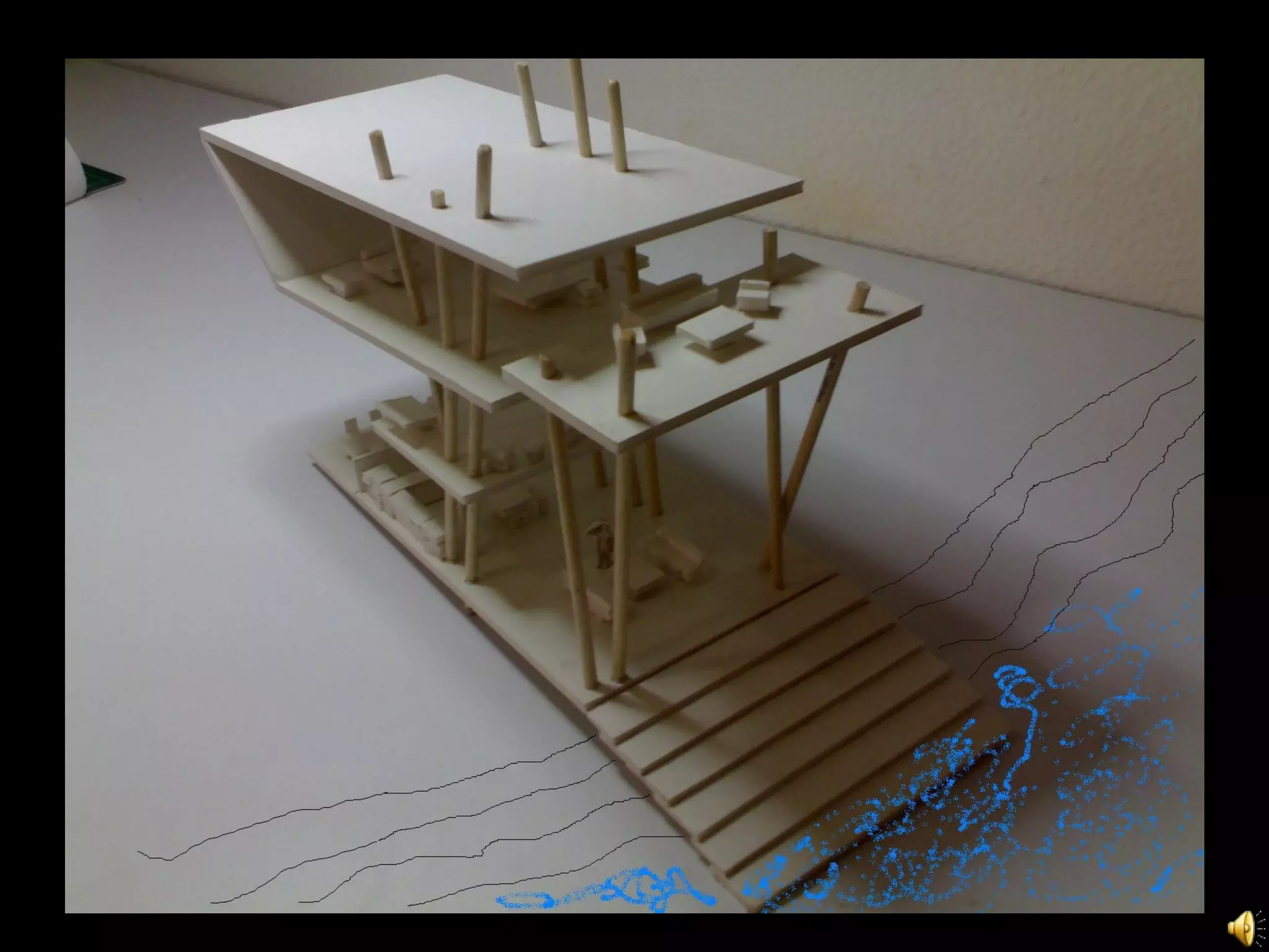 This document summarizes a final project for a personal habitat designed as a boat anchored to the sand near the sea. The design was abstracted from a photograph of a yacht, and features common areas on the first floor and private bedrooms on the upper floor, with a central studio. A double row of columns separates the space into three sections, allowing for peripheral circulation and a central open area. Materials used include wood and white-painted concrete to accentuate the form.