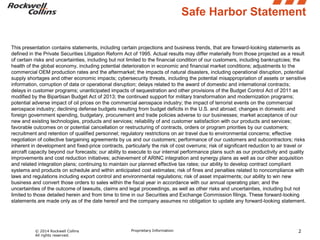The document provides guidance for Rockwell Collins for fiscal year 2014, including an increase in total sales guidance to a range of $4.95 billion to $5.05 billion. Segment operating margins are expected to be in the range of 20% to 21%, and earnings per share are projected between $4.35 and $4.55. Cash from operating activities is forecast at $600 million to $700 million.