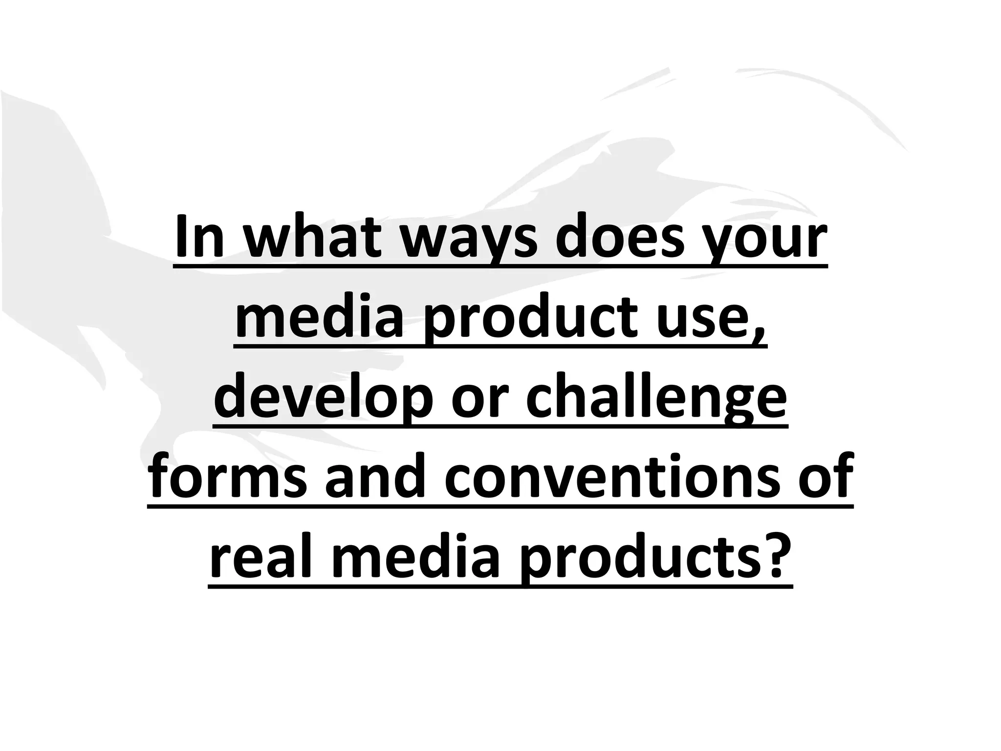 The document summarizes how the media product of a trailer, magazine cover, and film poster for a horror/thriller genre film challenge and develop conventions of real media. For the trailer, conventions like camera shots, editing, sound, characters, and locations were followed, but some elements like character outcomes were challenged. The magazine cover followed conventions like layout, masthead, and image placement, but challenged elements like text placement. The poster followed conventions like a close-up image and capital title, but challenged conventions like title placement. Overall, the media product used research of real examples to both develop and challenge typical genre conventions.