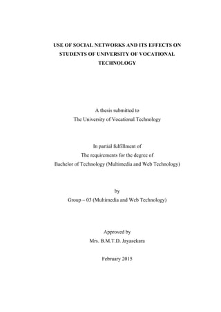 This thesis explores the impact of social networking sites on students at the University of Vocational Technology. A survey of 50 students revealed that while social media usage is prevalent among this demographic, a significant number perceive its effects to be negative on academic performance, particularly among younger users. The study highlights the importance of understanding social media's implications for student engagement and communication in educational contexts.