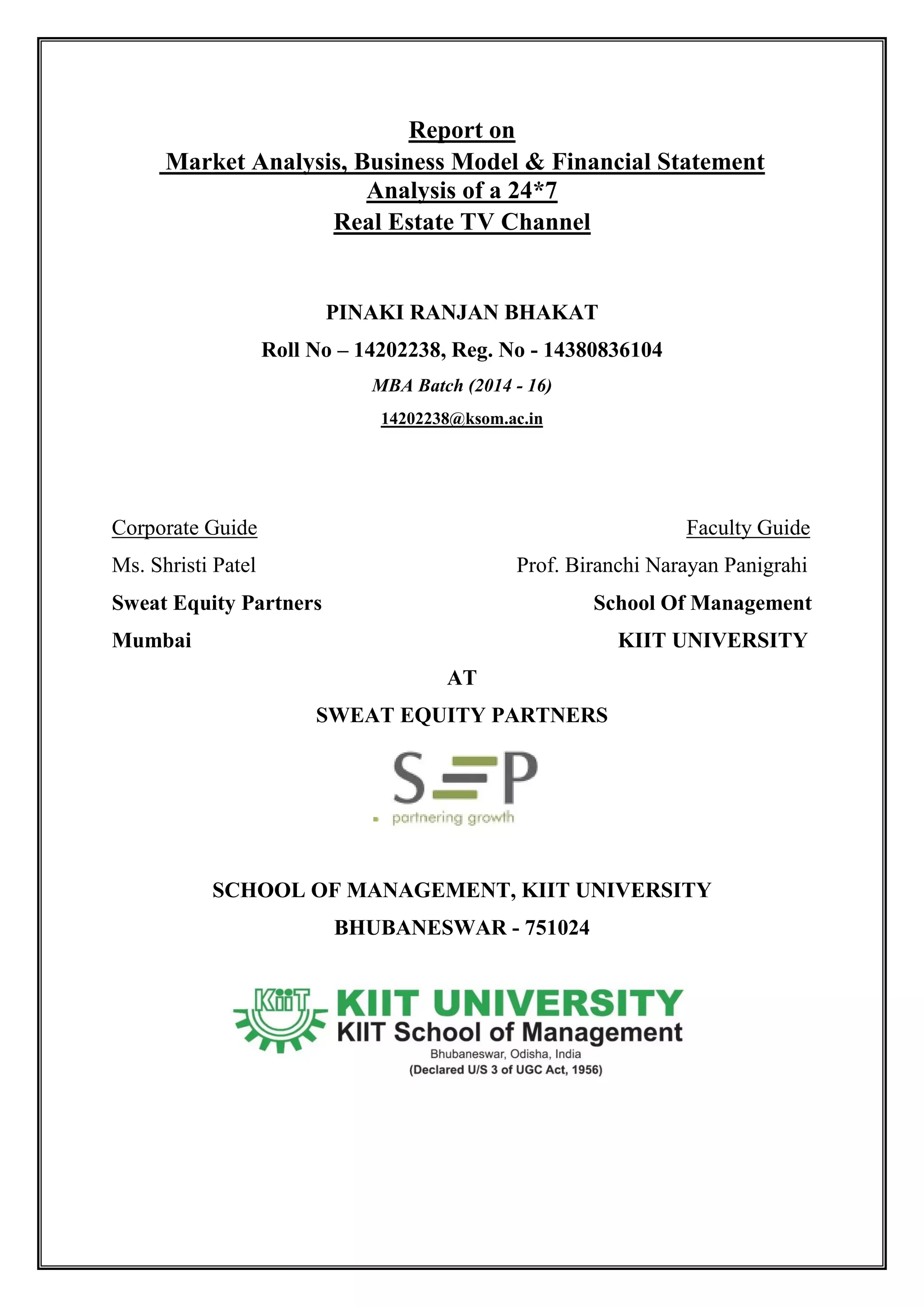 This document provides an overview and analysis of a proposed 24/7 real estate television channel in India. It discusses the channel's value proposition in providing real estate information to developers and consumers. The target market is identified as educated individuals aged 25-50. Competitors in the real estate and media industries are analyzed. The report also covers potential revenue sources, expenses, expansion plans, challenges, and 5-year financial projections to assess the business viability of the real estate television channel.