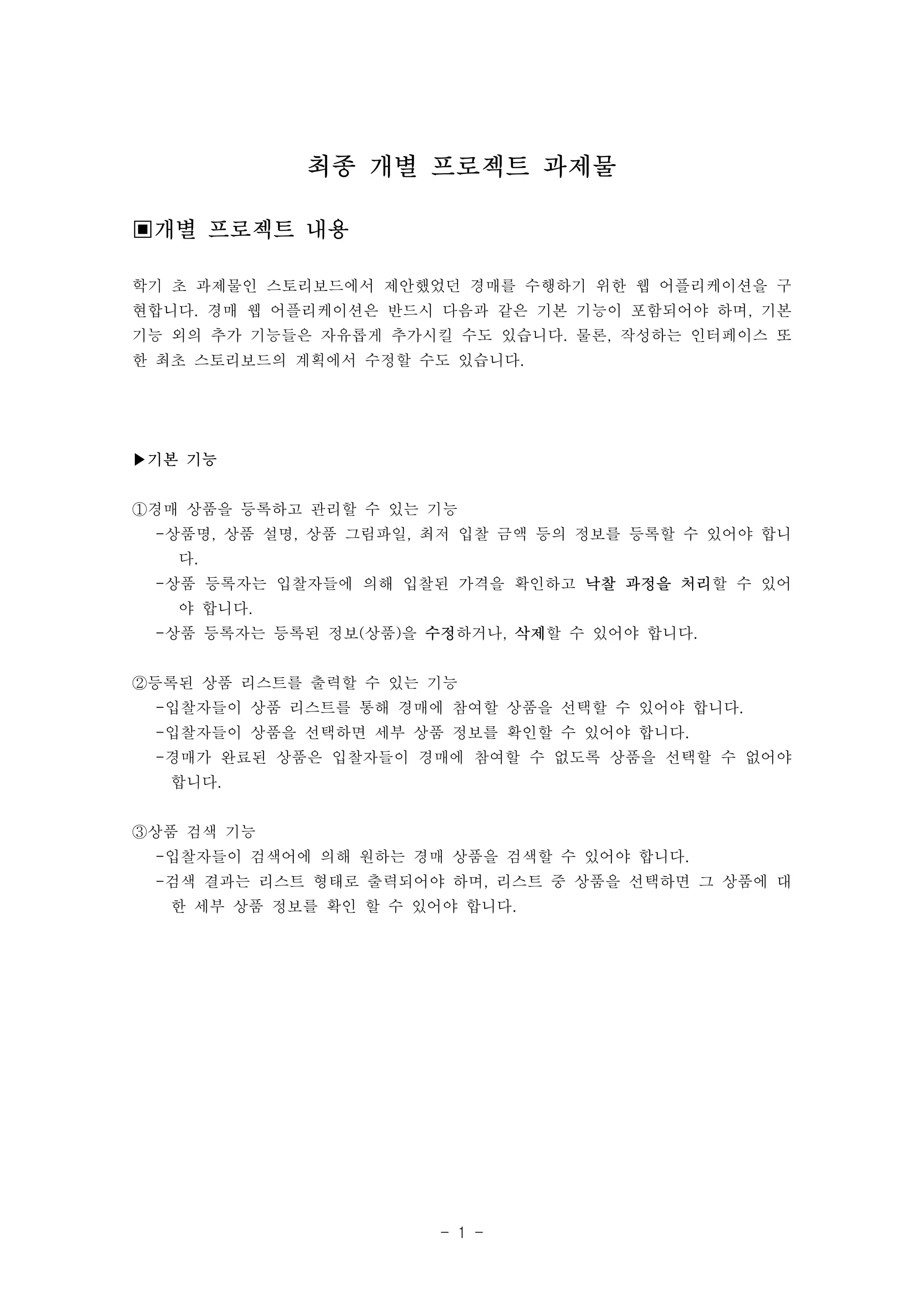 현합니다. 경매 웹 어플리케이션은 반드시 다음과 같은 기본 기능이 포함되어야 하며, 기본