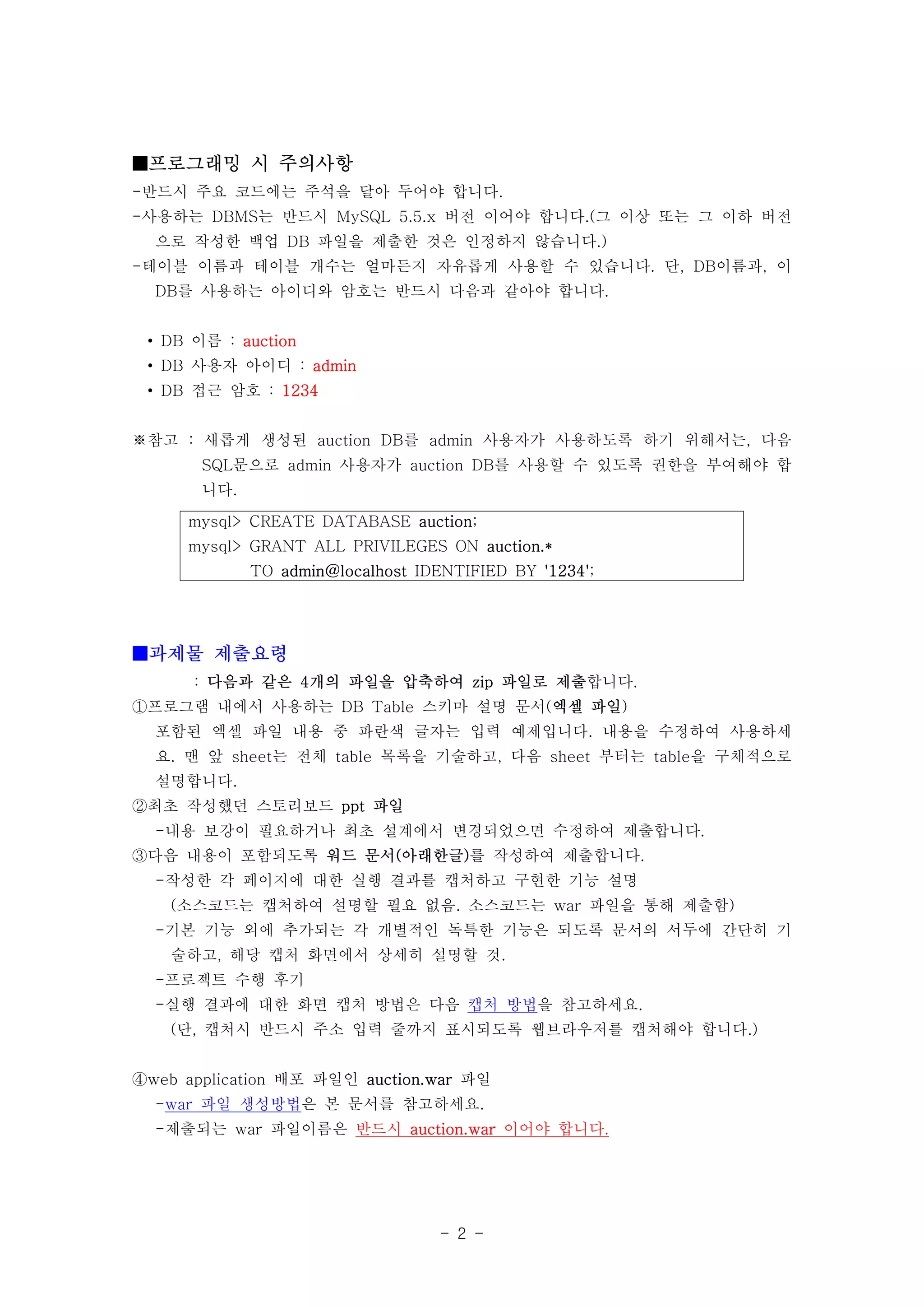 -제출되는 war 파일이름은 반드시 auction.war 이어야 합니다.